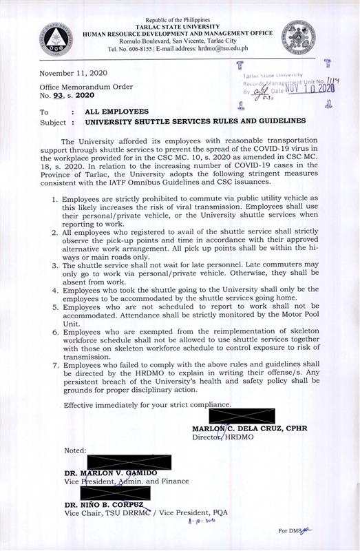 Office Memorandum Order No. 93, s. 2020