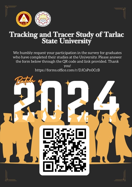 Your alma mater, Tarlac State University (TSU), invites you to take part in our 2024 Graduate Tracer Survey.