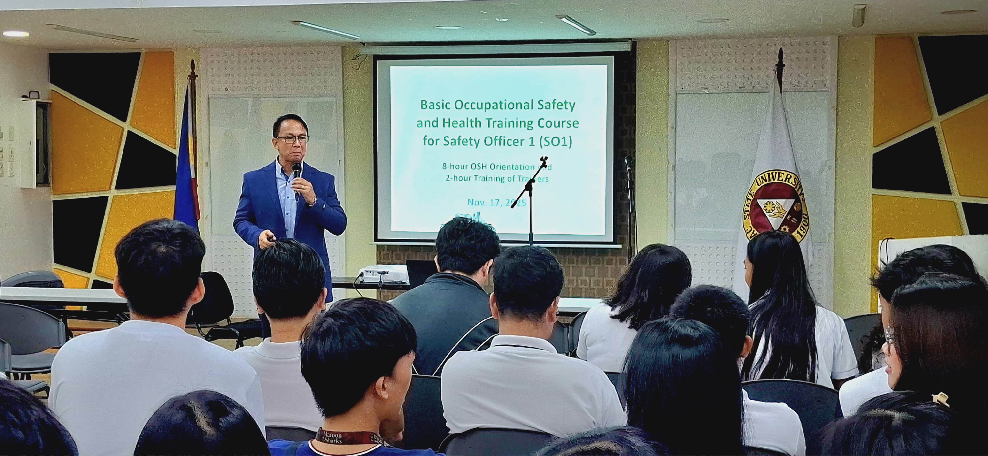 Three hundred fifty graduating students of Tarlac State University received a free Basic Occupational Safety and Health (BOSH) Training Course for Safety Officer 1 last November 17, 24, and 25, 2025 at the Engineering AVR, Main Campus.